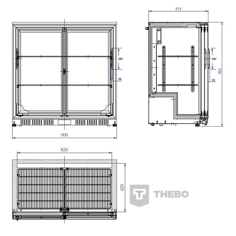 BxDxH 900x520x900 mm Breedte uitwendig 900 mm Diepte uitwendig 520 mm Hoogte uitwendig 900 mm Interieurbreedte 820 mm Interieurdiepte 385 mm Interieurhoogte 750 mm Isolatiedikte 40 mm Specifieke eigenschappen