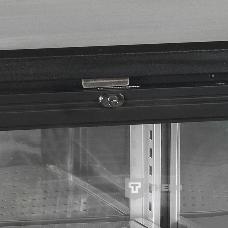 De CBC310G is een ruime backbar koelkast met drie glazen deuren, ideaal voor het stijlvol presenteren en koelen van dranken. Dankzij de geforceerde koeling blijven producten snel en gelijkmatig op temperatuur, zelfs bij een omgevingstemperatuur tot 32 °C. De koelkast heeft een inhoud van 460 liter, een digitale temperatuurregeling tussen +2 °C en +10 °C, en verstelbare stelpoten voor stabiele plaatsing. Standaard uitgevoerd met sloten, LED-verlichting en een verlichtingsschakelaar. De zwarte buitenzijde en het INOX-interieur geven een professionele uitstraling.