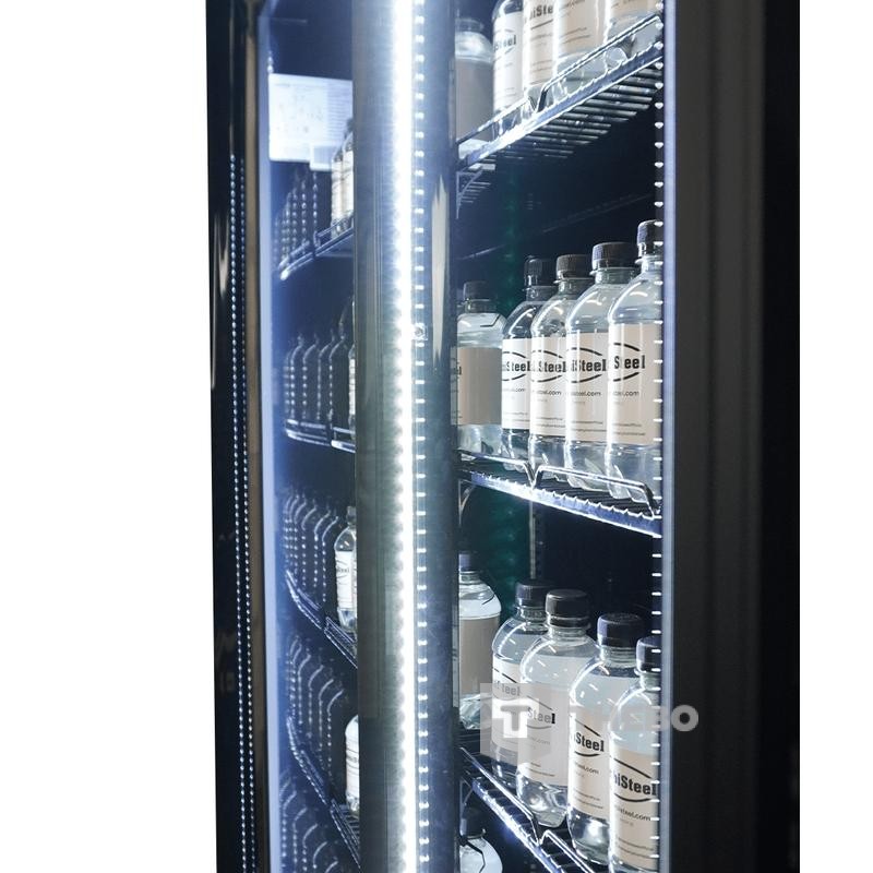 De Combisteel 7455.3155 is een driedeurs frigo met glazen deuren. De kast maakt gebruik van het duurzame koudemiddel R290. Dankzij de glazen deuren en de ingebouwde LED-verlichting is de inhoud van de koeling altijd goed zichtbaar. Het geforceerde koelsysteem zorgt ervoor dat de temperatuur constant en gelijkmatig is. Daarnaast wordt de 7455.3155 standaard geleverd met vijftien verstelbare roosters. Deze frigo beschikt over automatische ontdooiing en een gebruiksvriendelijke display en bedieningspaneel. De zes meegeleverde wielen zorgen ervoor dat de koelkast makkelijk te verplaatsen is.