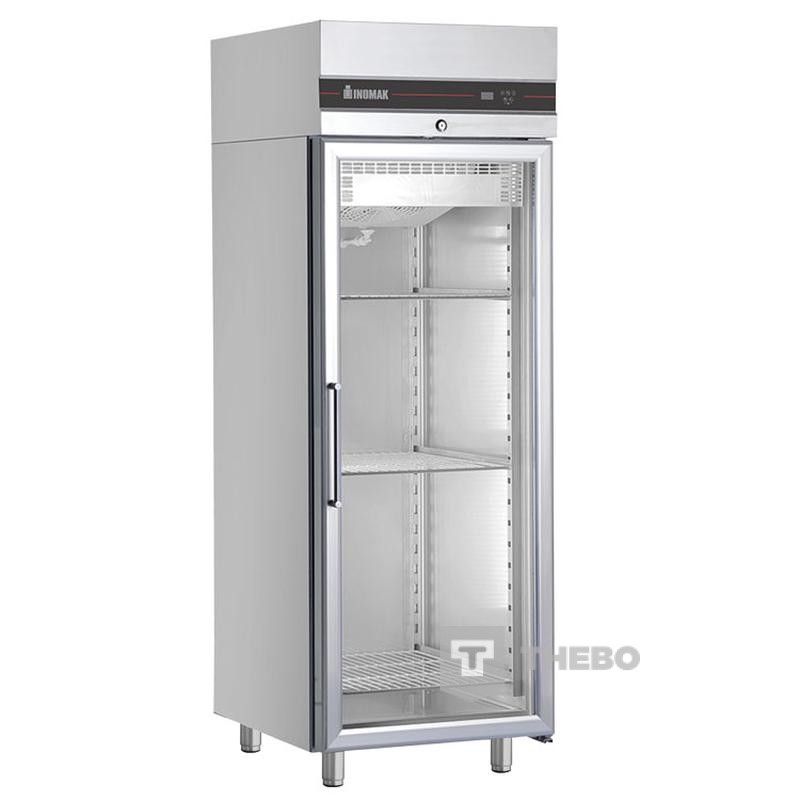 De Inomak CAP172/GL is op de glazen deur na volledig uitgevoerd in roestvrij staal. De hoeken en naden in de binnenzijde van de koelkast zijn volgens de meest strenge hygiënische voorschriften uitgevoerd. Wanneer de deuren van de Inomak CAP172/GL geopend zijn sluiten ze vanzelf, zolang ze niet verder dan 45 graden geopend zijn. De magnetische deurrubbers garanderen een perfecte afdichting en zijn zeer eenvoudig vervangbaar. De verdampers zijn gecoat met antibacteriële en anticorrosief epoxy verf, zodat ze beschermd zijn tegen zuren. Deze koelkast heeft een automatische ontdooifunctie met herverdamping van het ontdooiwater. Deze koelkast wordt standaard in 2/1 Gastronorm geleverd. De maatvoering is ombouwbaar tot Euronorm 60 x 40 cm.