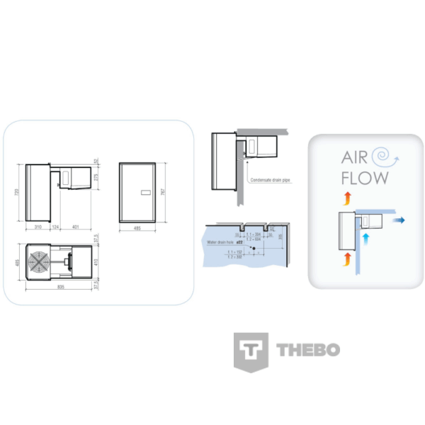- In verband met de afmetingen van de koelcel passen de deur en koelmotor niet in alle gevallen naast elkaar.