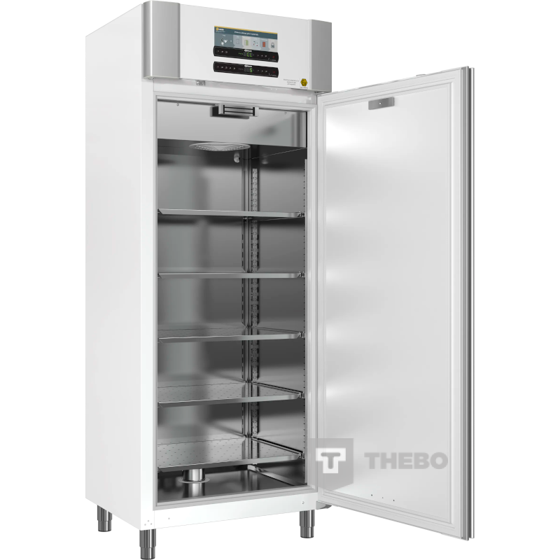 Met 486 liter netto-inhoud biedt de koelkast ruime opslag en snel temperatuurherstel na het openen. De elektromagnetische deurbeveiliging voorkomt ongeautoriseerde toegang, en akoestische en visuele alarmen waarschuwen bij temperatuurfluctuaties. De smart defrost functie zorgt ervoor dat het dooiwater automatisch wordt afgevoerd.