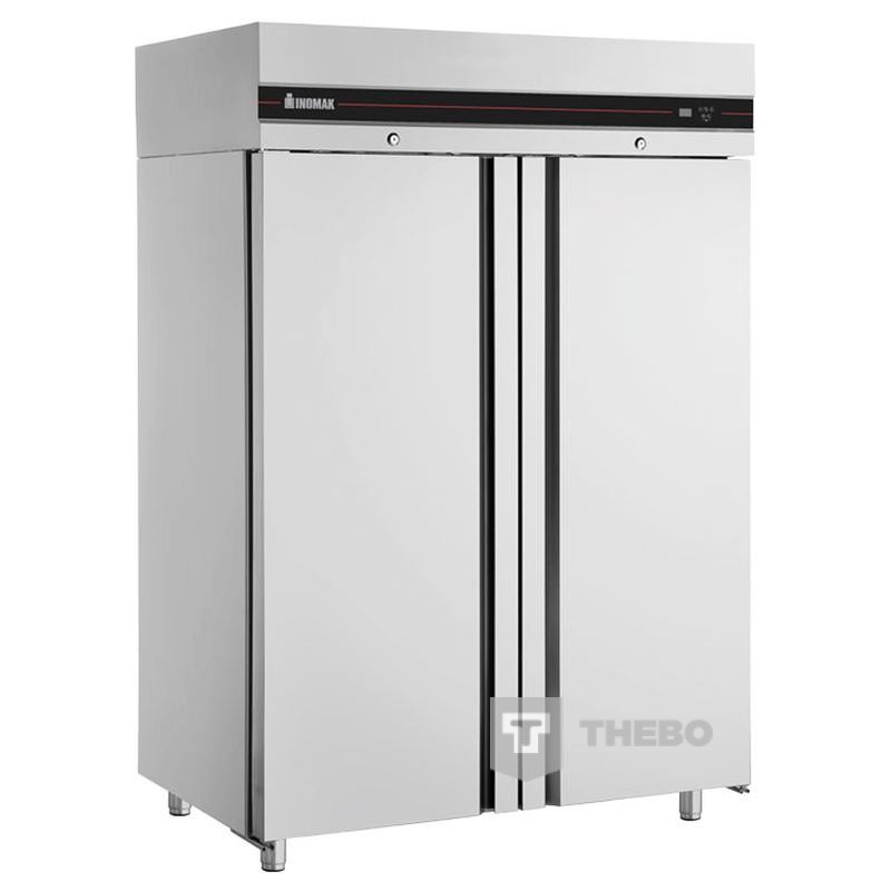 Merk Inomak Garantie 2 jaar Energieklasse E Gewicht 225 kg Inhoud 1432 L Inhoud netto 1010 L Materiaal inwendig INOX Materiaal uitwendig INOX Max. omgevingstemperatuur 40 °C Temperatuur -2/+8 °C Temperatuurregeling Digitaal Aansluitspanning 230V Aantal deuren 2 Klimaatklasse 5 Wielen Optioneel Stelpoten Ja Verlichting Ja Afmetingen