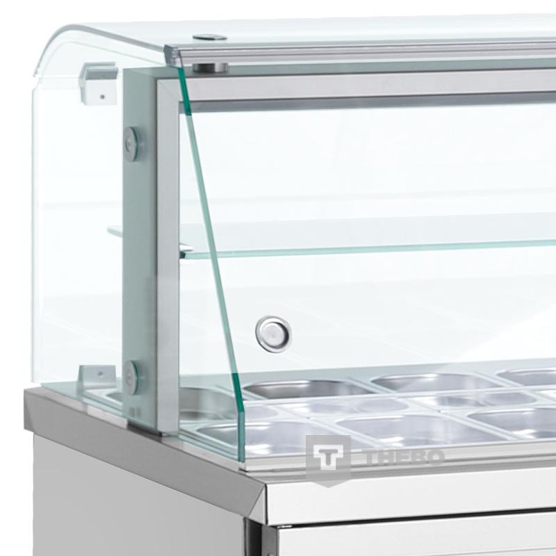 De Inomak ZQFP99 is zowel binnen als buiten geheel in hoogwaardig roestvrij staal uitgevoerd. De hoeken en naden in de saladette zijn volgens de meest strenge hygiënische voorschriften uitgevoerd. De staanders van de Inomak ZQFP99 voor de schap-ondersteuning zijn bij reiniging eenvoudig uitneembaar. De verdampers zijn gecoat met antibacteriële en anticorrosie verf ter bescherming tegen zuren. Deze saladette beschikt over een volledige vitrine. Deze saladette is dankzij een elektronische thermostaat en deuren die automatisch sluiten gemakkelijk te bedienen en daardoor ideaal voor elke horeca onderneming.